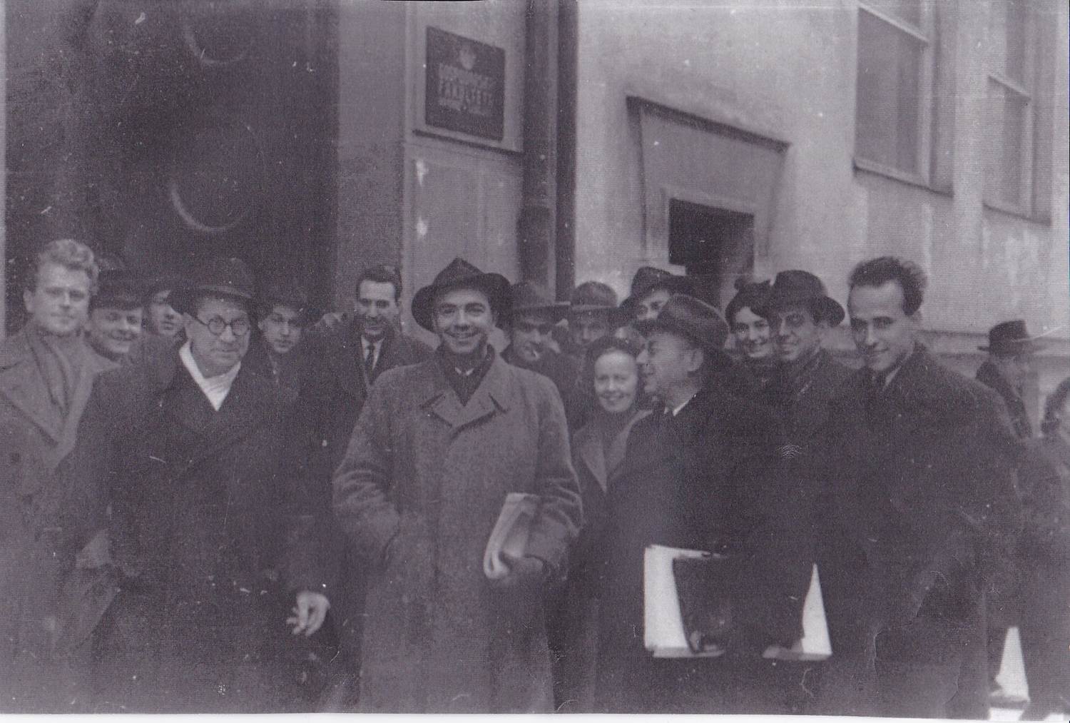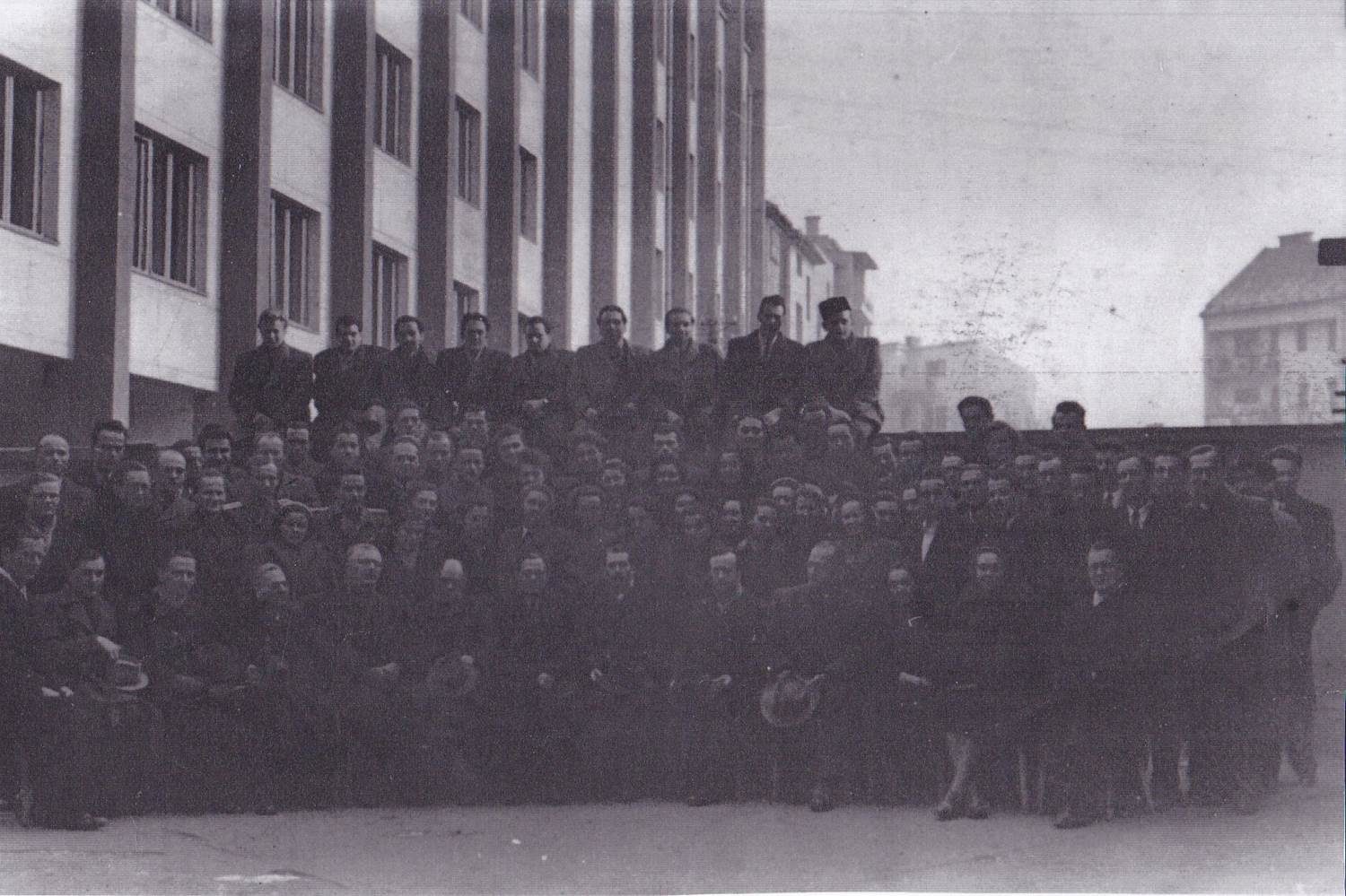 - Prva generacija študentov Gospodarske fakultete Univerze v Ljubljani v študijskem letu 1946/47 pred tedanjim fakultetnim poslopjem na Gregorčičevi ulici v Ljubljani – 1946