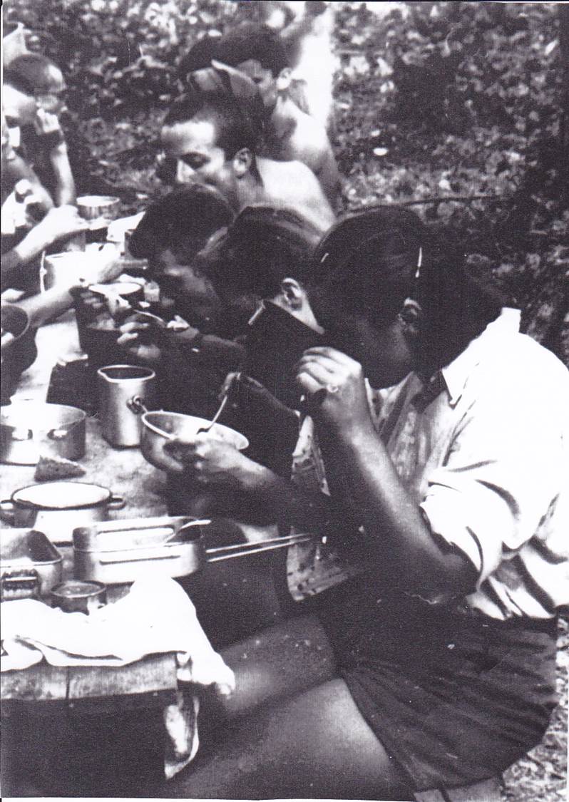 - Kasneje so se študenti Ekonomske fakultete skupaj z drugimi študenti ljubljanske univerze udeležili še delovnih akcij pri gradnji Študentskega naselja v Ljubljani, Novega Beograda, Ceste bratstva in enotnosti ter drugje. Na sliki: brigadirji pri jedi.