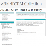 Zbirka ABI/INFORM Collection je ena največjih podatkovnih zbirk s področja poslovnih ved in ekonomije. Vključuje 3 podzbirke: