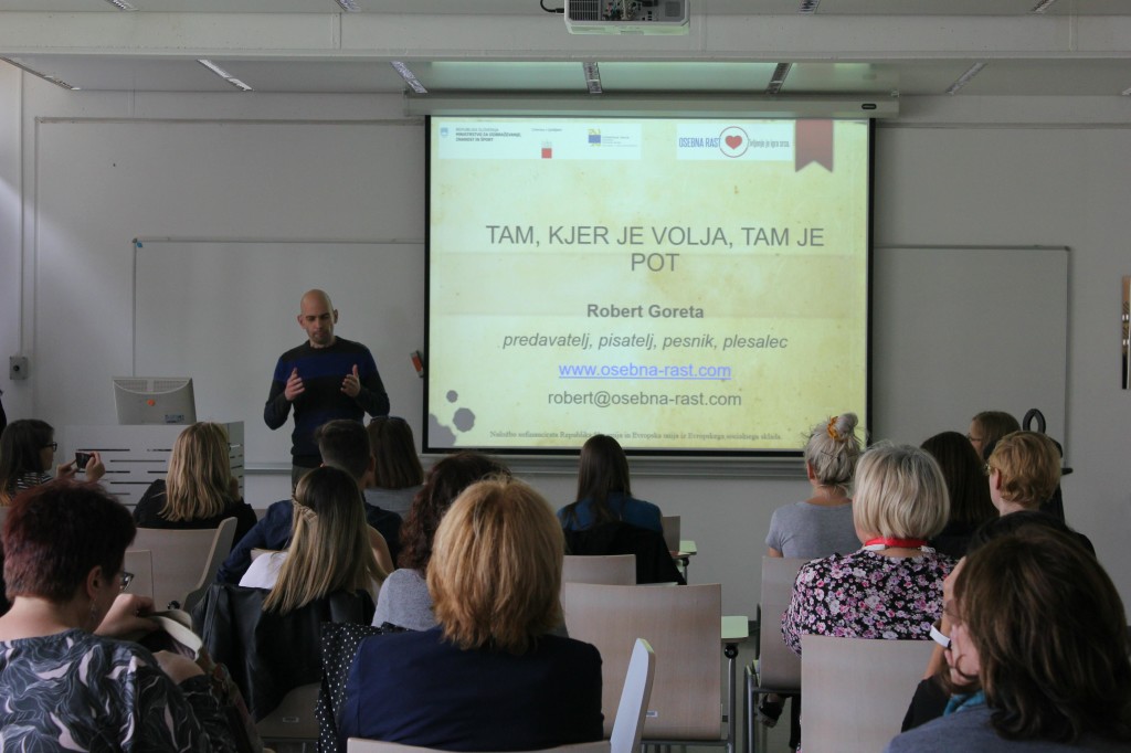 »Ne bodi več ujetnik svoje zgodbe. Razpri svoja mogočna krila. Poleti. Bodi orel. Bodi svoboden,« so besede predavatelja, pisatelja in pesnika Roberta Gorete, ki je na Kariernem kažipotu v svojem motivacijskem govoru povedal, da moramo v življenju vedno vztrajati in premagovati ovire. Kljub zavrnitvam moramo še naprej zaupati vase. Večkrat pa nam pomaga, če imamo ob sebi osebo, ki v nas verjame – spodbuda, motivacija, topla beseda in nasmeh so namreč stvari, ki jih po njegovih besedah potrebujemo za uspeh tako na osebnem kot poslovnem področju.