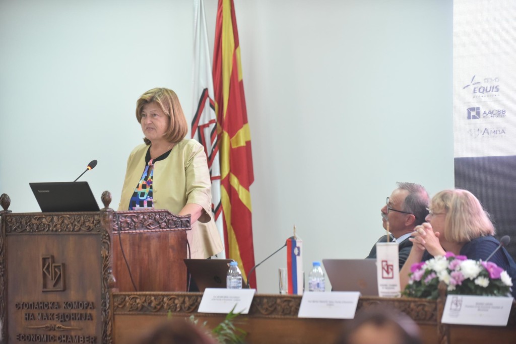 V nadaljevanju je dekanja prof. Metka Tekavčič pozdravila vse prisotne ter celovito predstavila fakulteto in pridobljene akreditacije, ki zahtevajo odličnost v njenem delovanju. O našem magistrskem programu Poslovodenje in organizacija v Makedoniji so spregovorili trije naši nekdanji makedonski študenti, sedaj uspešni gospodarstveniki, ki so poudarili kvaliteto programa, njegovo praktičnost in odlično organizacijo.
