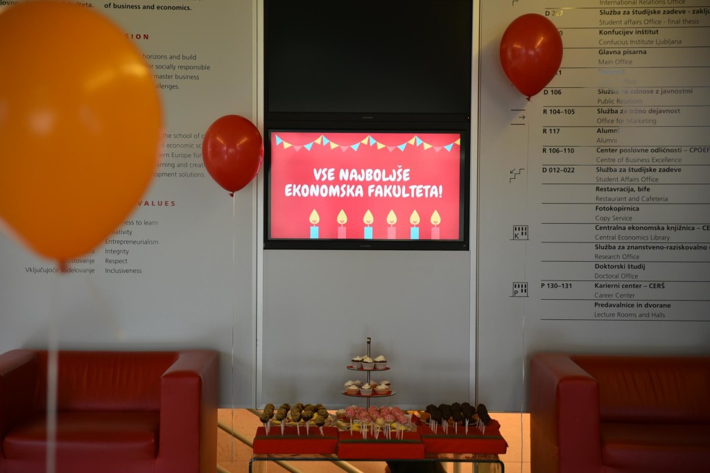 Rojstni dan fakultete je praznik vsakega izmed nas, zato smo v sladkem kotičku pri recepciji fakultete praznovali vsi, zaposleni, študenti, obiskovalci …