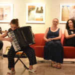 Torek, 27. avgust 2019, je bil poseben dan, saj se je v Galeriji Ekonomske fakultete izjemoma zgodila zatvoritev razstave namesto otvoritve, kot smo je vajeni. Dogodek je zaznamovala ne le umetnica, ampak tudi njena družina. Glasbena skupina Kontrabant, na čelu katere je mož umetnice Béla Szomi Kralj in beleži že več kot 25 let ustvarjanja, je dodala tisto smetano na sadno kupo umetniških kolažev, ki so v galerijo vnašali čarobnost. Za češnjo na vrhu pa je poskrbela njena hči Zsuzsika Szomi Kralj, ko je brezhibno zaigrala na klasično harmoniko.