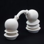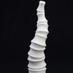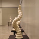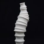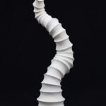 Vrtenje v življenje je razstava, na kateri se Teja Hlačer predstavlja s svojimi najnovejšimi deli, s katerimi se poglablja v razmišljanje o odnosih in povezavah med oblikami. Te umetnica razgrajuje vse do skeleta, kar pripelje do razmišljanja o gibanju in vrtenju; vse v našem svetu se vrti, od atomov do planetov in zvezd. Tudi dela Teje Hlačer so ustvarjena z vrtenjem, na njenem najljubšem orodju – lončarskem vretenu. Z uporabo bele kamenine, žgane na visoki temperaturi 1250 stopinj C, ustvarja oblike. Njihova aktivna linija, vidna v svetlobi, povzroča v gledalcu haptično doživljanje globine, višine in širine. Daje mu občutek gibanja in s tem lahko tudi metafizično dimenzijo.