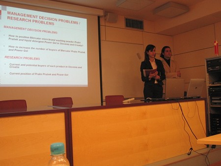 The aim of the project was to form a development strategy for some of Mercator’s trademarks in certain groups of brands as the process of managing the groups of brands and the development of own trademarks are the two of the key projects in the Mercator Group. Students presented the results and findings of the project to the upper management of the Mercator Group who evaluated the project as very successful as its findings add a great value to further work of the Mercator Group who will thus include them in their further directions. Cooperation among the business world and educational institution again proved to be successful and strengthened the ties with the Mercator Group which will continue its fruitful cooperation with the Faculty of Economics and support such programmes as the IMB is.