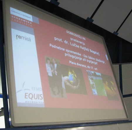 Lučka Kajfež Bogataj, PhD, full professor at Biotehnical faculty and one of the winners of Nobel prize for peace, held a lecture at the FELU entitled Climate Change – Time of Choice: Mitigating, Adapting or Suffering?.