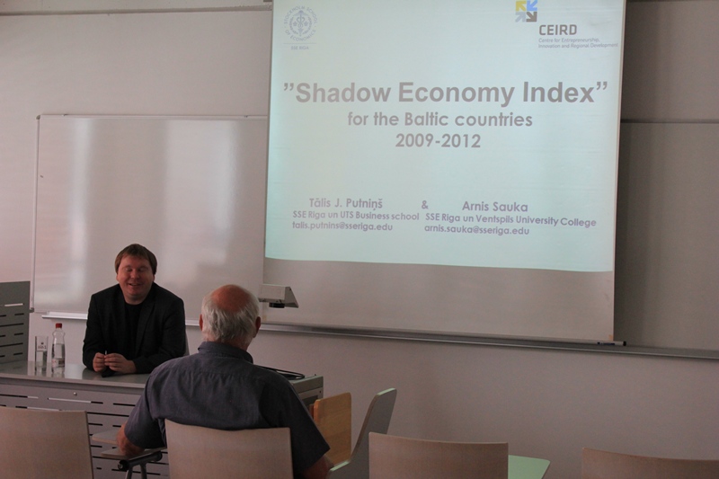 Research Centre, Faculty of Economics organised a scientific – research seminar on Wednesday, 25th September 2013 at the Faculty of Economics Ljubljana. Arnis Sauke, Ph.D., Stockholm School of Economics in Riga (together witth: Tālis J. Putniņš, Ph.D, Stockholm School of Economics in Riga) presented an article “WHAT CAN BE LEARNED FROM ENTREPRENEURS ABOUT SHADOW ECONOMY? Evidence from the Baltic States.”
