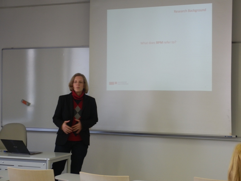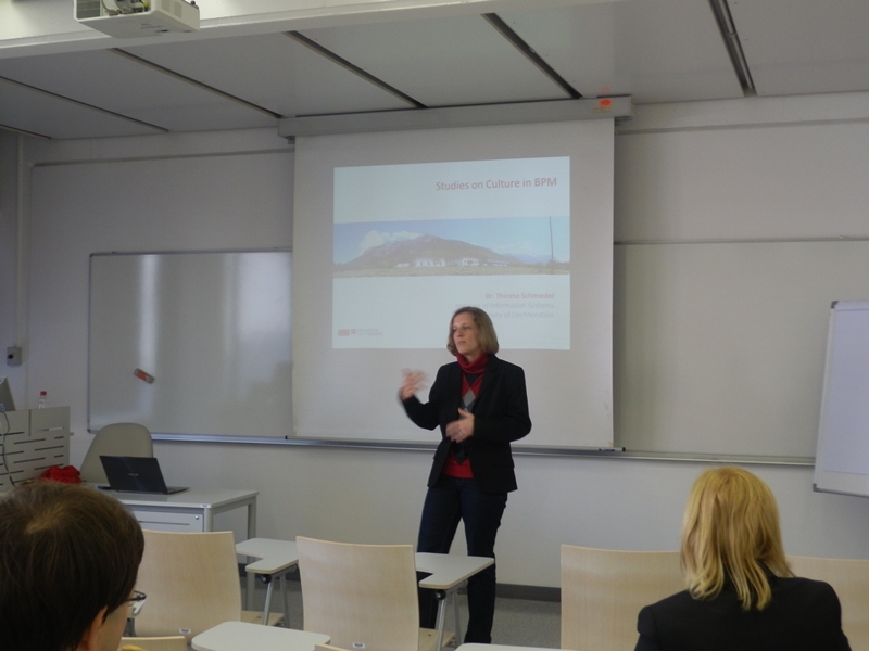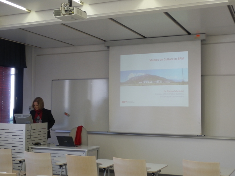Research Centre, Faculty of Economics organized a scientific – research seminar on Wednesday, 16th  October 2013. Doc. dr. Theresa Schmiedel  from University of Liechtenstein presented an article: “Cultural Fitness for BPM”.