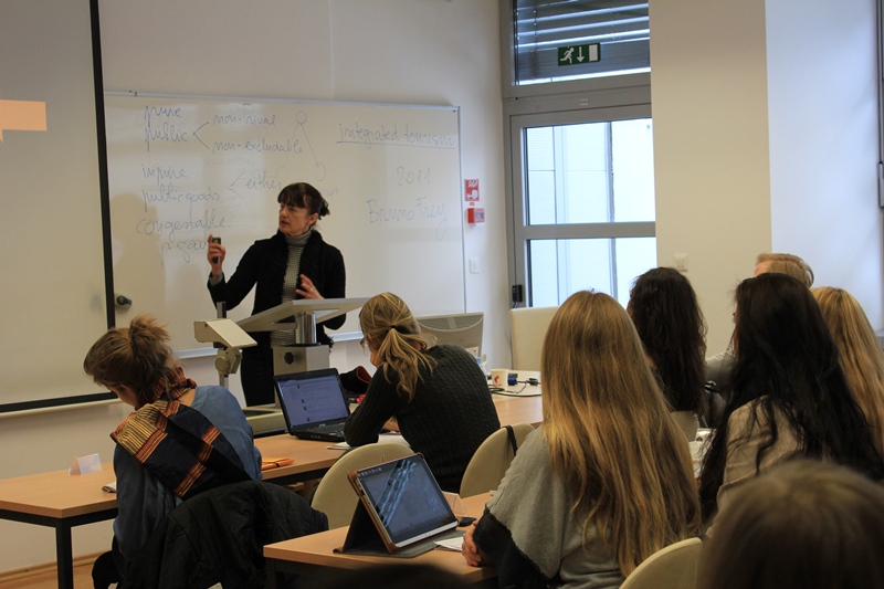 On 7 February 2014, Professor Lučka Kajfež Bogataj was a host lecturer at the EMTM (European Mater in Tourism Management) 2013-2015 study program, run by Professor Tanja Mihalič. The renowned climatologist and the Nobel Prize co-winner, who was awarded the prize for her work in the Intergovernmental panel on climate change, lectured on climate changes and political environmental sustainability. The main aim of the lecture was to address students’ dilemmas over the justification and credibility of political involvement in diminishing and preventing the impact of climate changes. Students prepared many interesting questions for discussion.