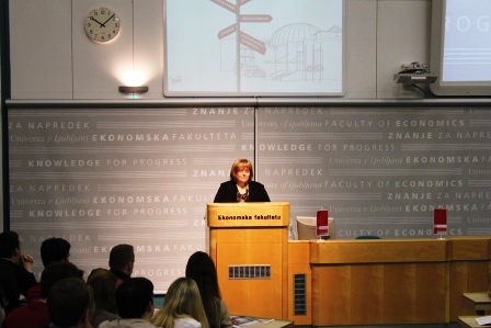 The next speaker was Ana Ahačevčič, a postgraduate student of Marketing at the FELU. Ana shared her experience of studying at the FELU and explained the reasons that made her enroll at the faculty and go on with her studies on the postgraduate level.