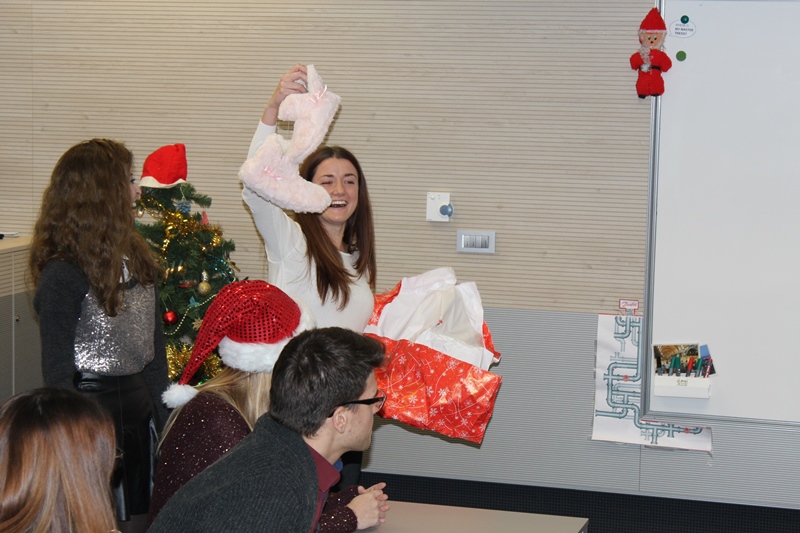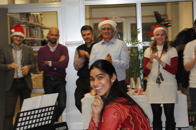 Slovenians call December ‘Happy December’ and the 2014 New Year Celebration was nothing less then short of joyful. Professors and students alike got together to celebrate the end of a very successful year. Some of students even granted us with honor of showing us some of their more artistic talents. Avgust Jagodic with his accordion, Eva Kern with a voice that stole our hearts and Prakriti Gaur delighted us with a traditional Indian Dance. Christmas jingles were at full blast, and Christmas decorations gave the atmosphere warm feeling for that cold winter day. Students got the chance to exchange gifts amongst each other and were very lucky to find some great surprises! All in all, the evening was a well-deserved celebration from all the hard work they gave for the first part of a school year.