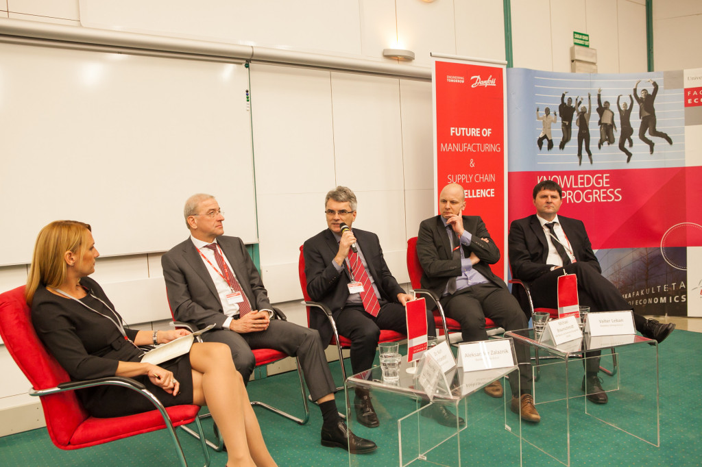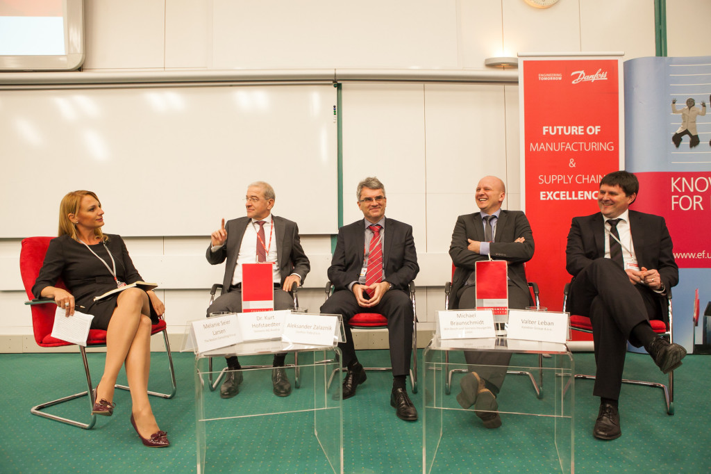 On January 15, 2015 the Faculty of Economics of the University of Ljubljana (FELU) proudly presented a conference for the Future of Manufacturing & Supply Chain Excellence. Part of this conference was a table talk focused on the future with esteemed guests: Aleksander Zalaznik (Senior Vice President, Danfoss District Energy Controls and General Manager, Danfoss Trata d.o.o.), Dr. Kurt Hofstaedter (Head of Digital Factory CEE, Siemens AG Austria), Michael Braunschmidt (Director of Industrial Engineering at Bosch and Siemens Home Appliance Group), and Valter Leban (Management Board Member, Kolektor Group d.o.o.). The event was moderated by Melanie Seier Larsen from The Boston Consulting Group.