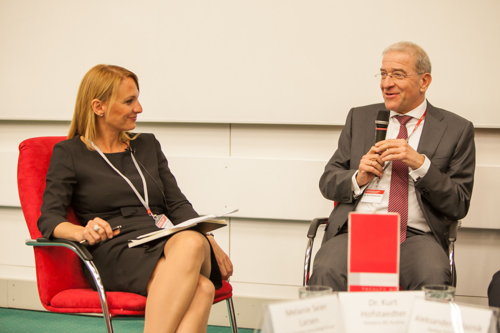 The table began with the introduction of the guests and moderator Melanie Seier Larsen. The attitude was light and humorous as Larsen recounted a story of lost luggage and what should be done to help with airline supply chains, which was immensely enjoyed by the audience. Melanie Seier Larsen then stated that the word ‘imagine’ had been used several times in speeches earlier in the conference and then posed the question, “What were you imaging 20 years ago?” Aleksander Zalaznik confidently answered “I believe, no pain, no change. 20 years ago, it was pain. I had a vision and good people. Why can’t a Slovenian company be as good as Austrian or German? You have to make sure you have people who support you.” He emphasized the need for good people who support not only a company, but the vision of a company and also stated that there are people with Danfoss now that were there 20 years ago. This kind of loyalty is very important.