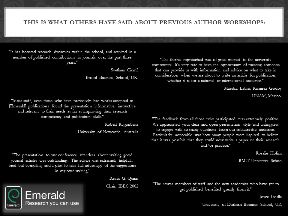 The last part of the session – the seminar on how to get published will contain insider’s information on: