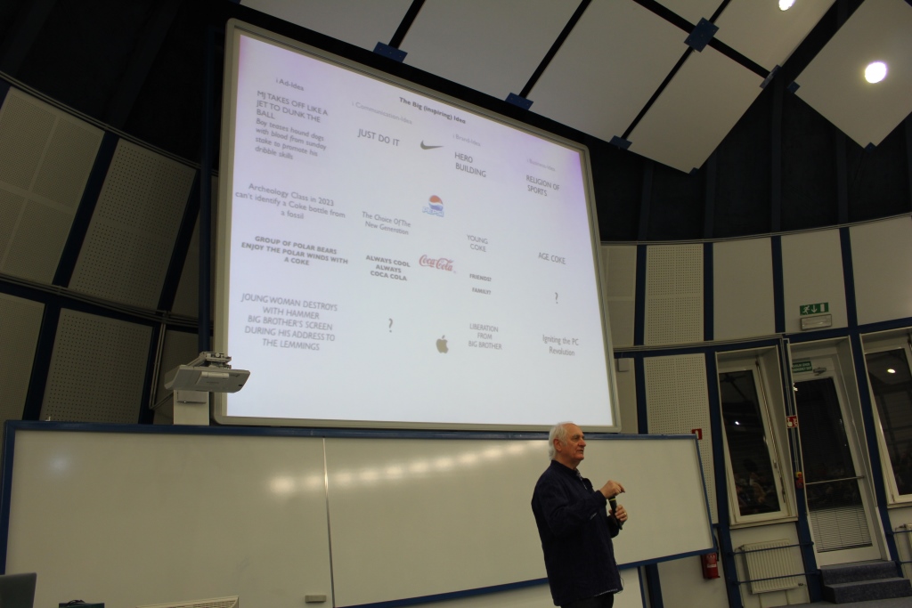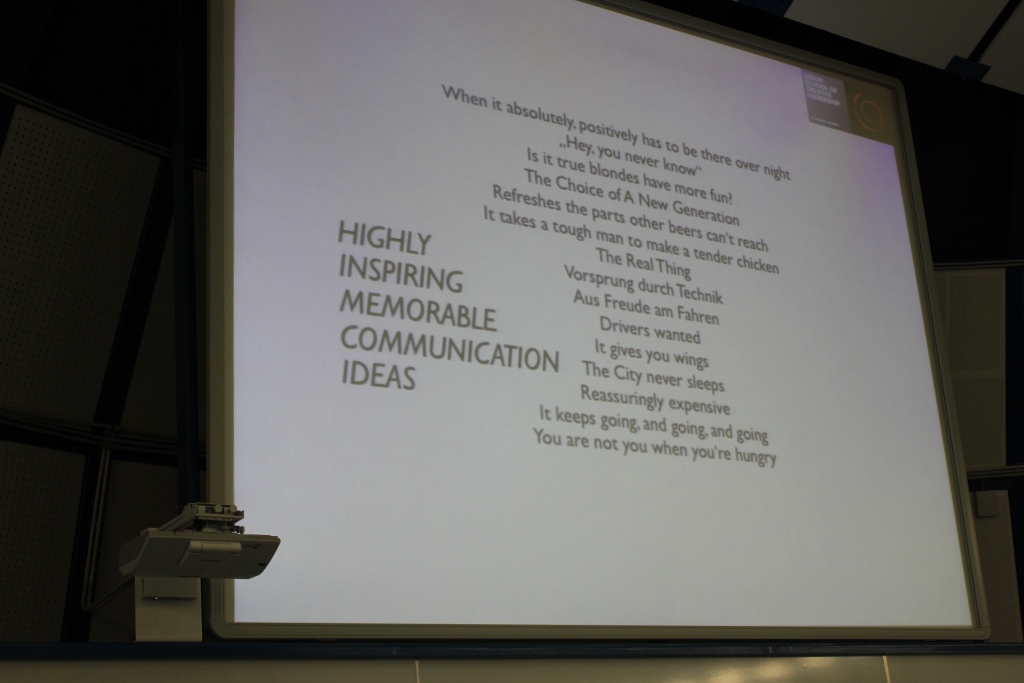 The event began with a brief introduction of Michael Conrad and his many accomplishments. After 34 years of working in advertising, Conrad retired in 2003 and is now the president of the Berlin School of Creative Management, where advertising, design, entertainment, interactive media, and journalism are combined, since its inception in 2006. He is in Slovenia to participate as a jury member in the 8th annual International Advertising Cup. Conrad introduced himself as a practitioner, as he lectured about brand management and “the architecture of big idea”, which was the main theme of the event.