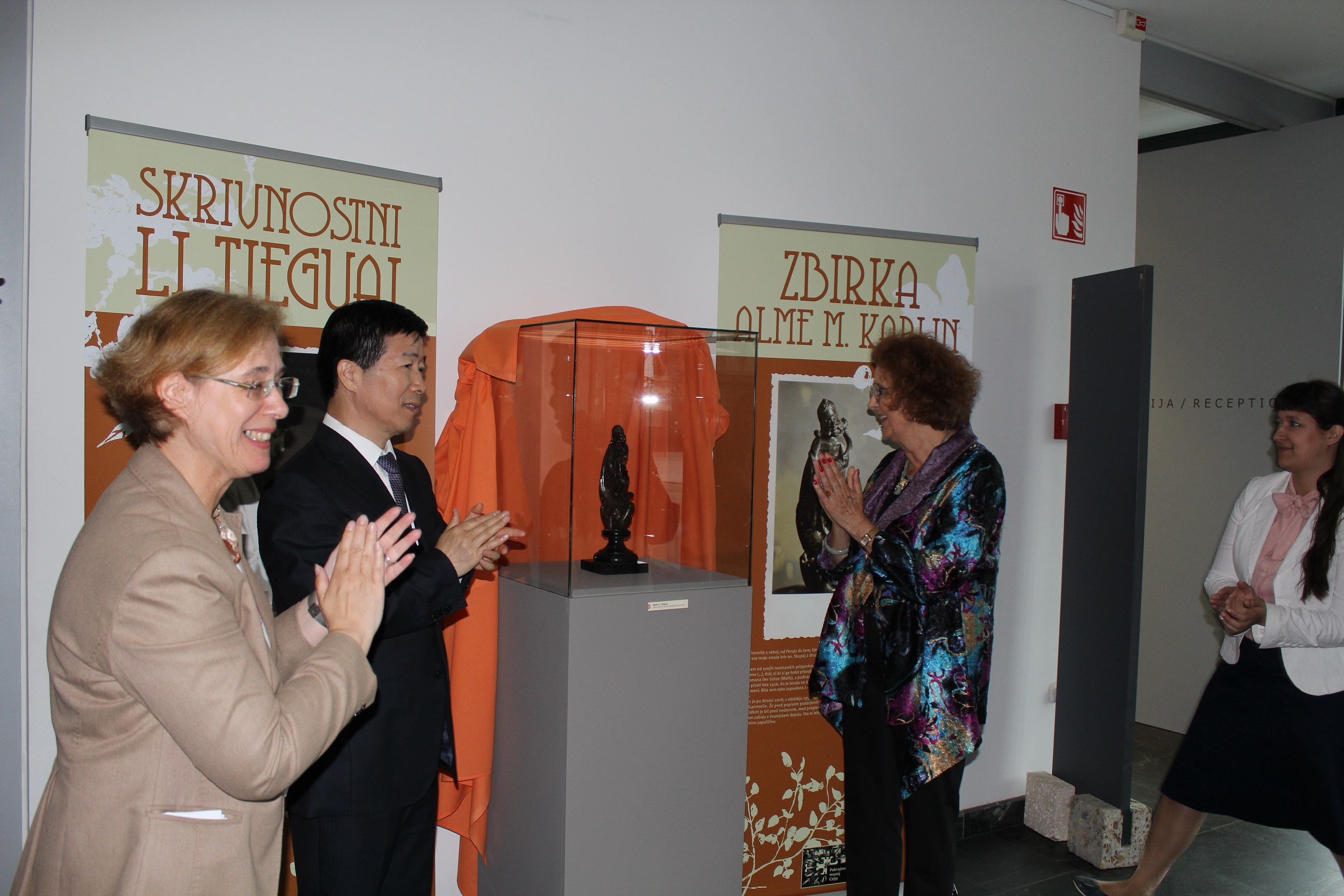 On Wednesday, 20th of May 2015 we inaugurated an exhibition of recently discovered statue of famous Slovenian traveler Alma M. Karlin in cooperation with the Slovene Ethnographic Museum and Celje Regional Museum. At the opening there were the Ambassador of the People’s Republic of China in Slovenia, H. E. Mr. YE Hao, Director of Slovene Ethnographic Museum, dr. Ms. Bojana Rogelj Škafar, Director of The Celje Regional Museum, MSc. Mr. Stane Rozman and Director of Confucius institute Ljubljana, MSc. Ms. Danijela Voljč.