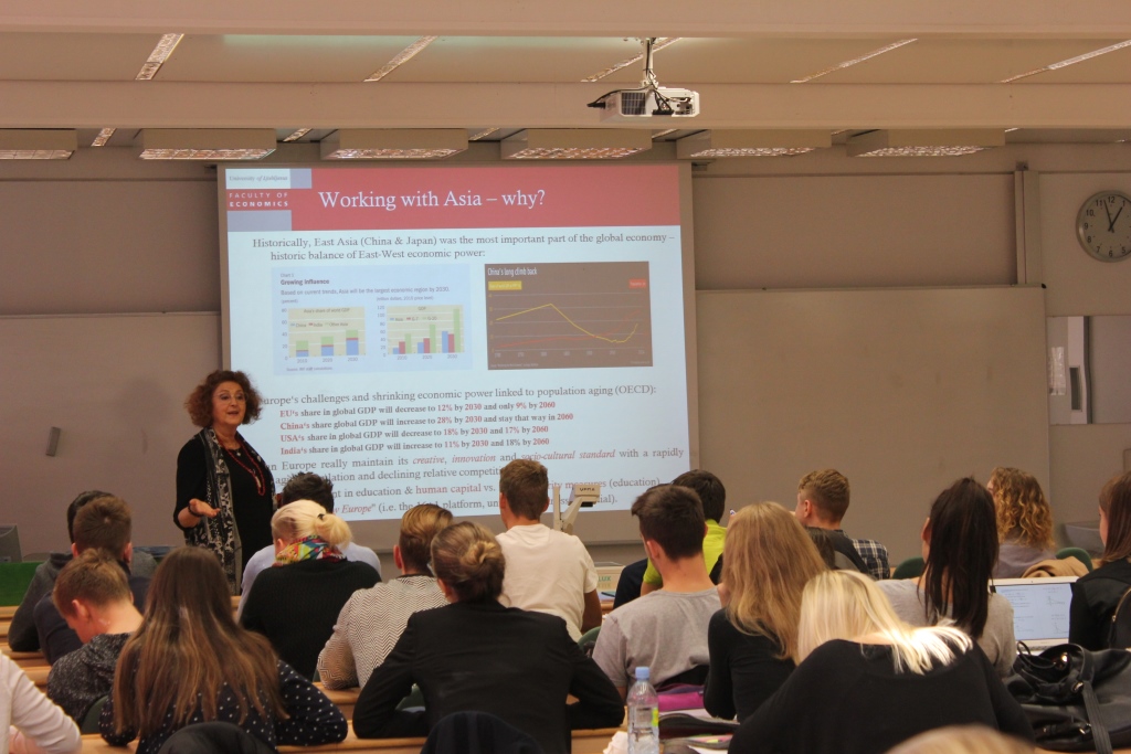 On Wednesday, 11. 11. 2015, Faculty of Economics University of Ljubljana was hosting at Management Course valuable expert in the international management field Mrs Danijela Voljč, MSc who is the Head of International Relations Office at the Faculty of Economics University of Ljubljana; the Director and Board Member at Confucius Institute Ljubljana; and the Head of the Ljubljana Summer School.