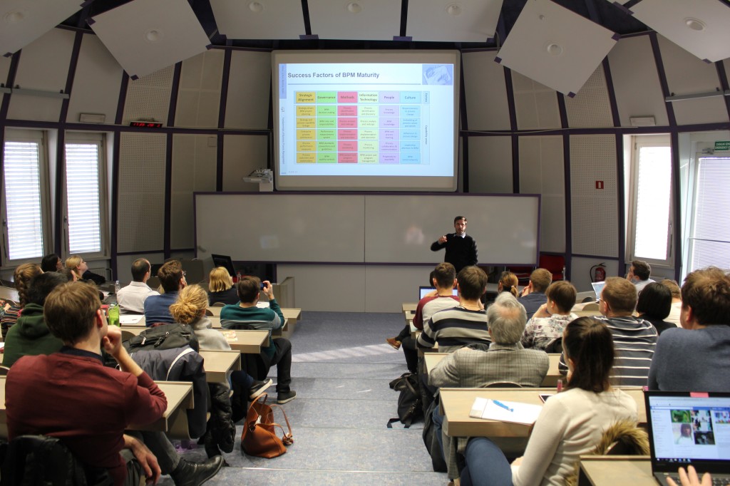 The business world is rapidly changing with the emergence of new technologies and digitalization. This also had an irreversible effect on traditional business processes and Business Process Management (BPM). On 28th March 2018 FELU’s students had the opportunity to hear about the latest trends in this area by visiting professor and the co-author of Fundamentals of Business Process Management, dr. Jan Mendling from the Department of Information Systems and Operations at Vienna University of Economics and Business (WU)