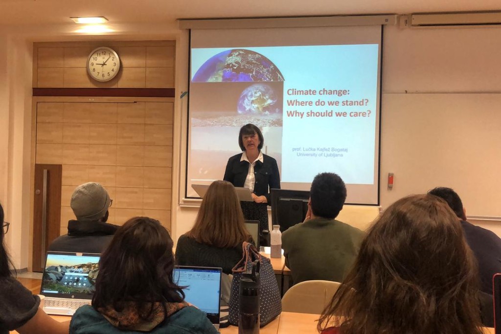 On 18th February 2020, Erasmus Mundus EMTM programme, subject Environmental Economics and Tourism (Prof. Tanja Mihalič) hosted prof. dr. Lučka Kajfež Bogataj, professor and climatologist, a member of the United Nations Intergovernmental Panel on Climate Change and the Nobel Peace Prize winner in 2007. The topic was climate change and socio-political aspects of the action. The lecture was followed by a discussion of the climatological, economic and socio-political challenges posed by climate change.