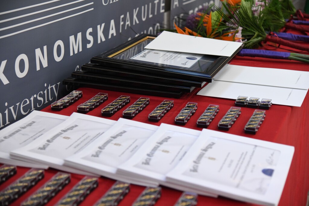 The honorary speaker Janez Škrabec, General Manager of Riko d.o.o. and President of SEB LU Alumni, also addressed all present. “With your excellent work, you have captured the attention of those who are equally as excellent as you. With today’s commitment to the Beta Gamma Sigma club, you are creating a new core of the successful entrepreneurial network in the future. Beta, gamma and sigma in the name of the society symbolise honour, wisdom and earnestness. These are the highest principles you are committing yourself to by joining the BGS community. Loyalty to these values and your intimate decision to follow and internalise them will be of help and support to you when taking individual decisions as well as charting your life and career paths. This is the deepest purpose and meaning of these internal compasses and external commitments. If ever, these values are important today, when we have found ourselves in adversity, when our rules and safety mechanisms are failing. When our world derails, moral law becomes the foundation we must rely on in our decisions that, only yesterday, were unforeseen.”
