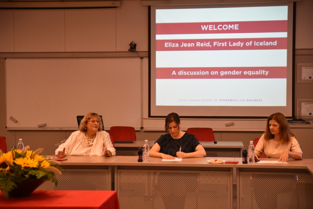 Although over the last century relations between the genders have changed enormously, women still do not have opportunities equal to those of men anywhere in the world – they earn less on average, do the bulk of managing household and family tasks, are more exposed to domestic violence and rarely advance to top positions in their field, particularly if these are reputable and well-paid. Despite the exemplary policies with which Iceland builds gender equality, Ms Reid pointed out that Iceland is not the world’s best country in this respect because it has already have achieved the desired balance between opportunities for men and women, but because no other country in the world has done more in this area. Most Icelandic women, from teenagers to pensioners, take part in a special “strike” – a day when women do not show up to work or perform any housework. Ms Reid gave the Slovenian female entrepreneurs, managers, professors, musicians and journalists a good laugh by describing the experience: “On this day the shops run out of frankfurters. They are all bought by fathers who have to make dinner for the children.” Gender equality in Iceland is a social value of which not only women are proud, highlighted Iceland’s First Lady, who was amazed about the stories and experiences from Slovenia.