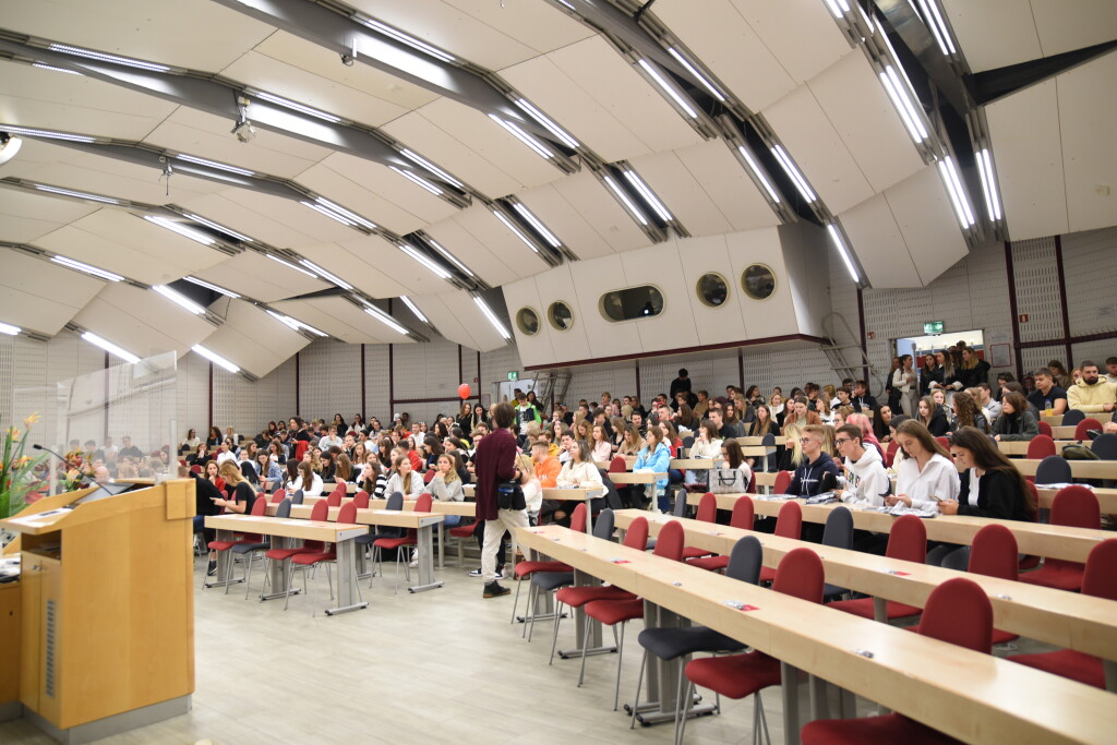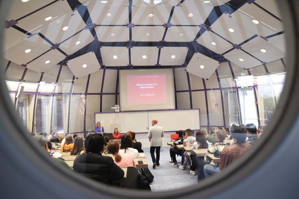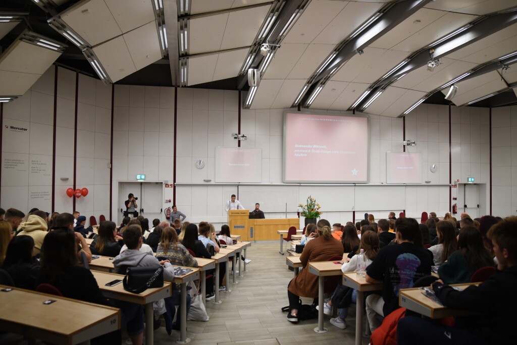 At the introductory part of the Undergraduate orientation day 2022, our new students listened to Prof. Mitja Kovač, who spoke about values, to alumnus Uroš Ferlin, who, despite being diagnosed with dyslexia, became the founder of coaching for discovering potentials and hacking time. Students were also greeted by the teachers who the students will meet in the winter semester and they told them a few words about the subject they are teaching. The representative of the SEB LU Student Council Matej Lino Pirc also made a speech. Reception moderator Martina Sagir talked to our students, who gave the freshmen some extremely useful tips for studying; Barbara Teodorović and Rastko Ilić, both coming from Serbia were with us.