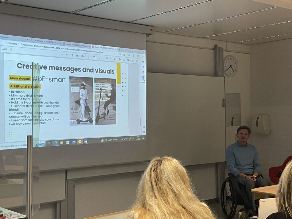 In the winter semester 2022/2023, in the course “New Product Development” in the Marketing program, under the leadership of Prof. Tanja Dmitrović and Assoc. Prof. Živa Kolbl, we established a cooperation with Zavod Vozim, a leading organization in the field of innovative education on safe driving. We put our master students in the role of a research and advertising agency, where, starting from the given problem of distraction in micromobility, they searched for the best solutions that would lead to a change in the behavior of young people in traffic.