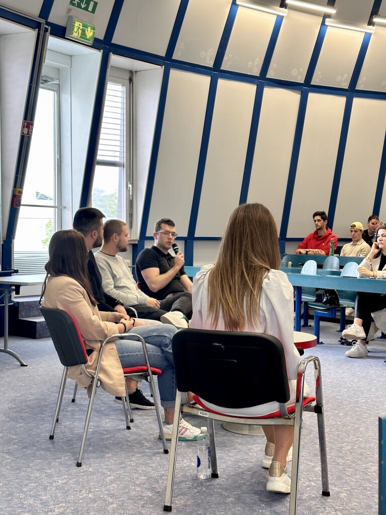 The round table was moderated by Nina Brauc, a student of the Master’s degree in Marketing. The main part of the event was the debate, where upper year students presented their fields of study. The panellists were Maruša Kegljevič, a student of the VPŠ (Marketing) programme, Tim Kržič, a student of the UPEŠ (Management) programme, Aljaž Velkavrh, a student of the UPEŠ – English track programme, and Matej Lino Pirc, a student of the UPEŠ (Money and Finance) programme.