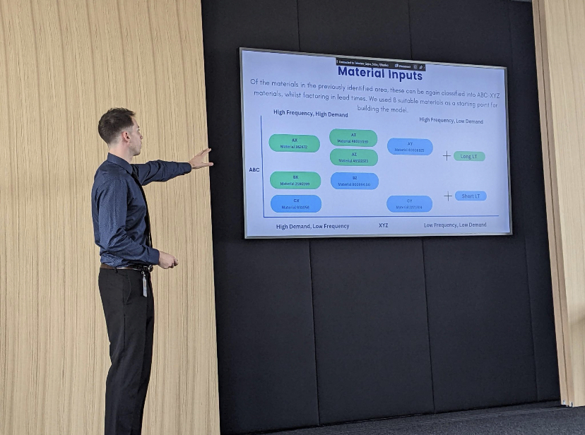 Our group of Technology Management students worked on the project “Developing an optimal ordering strategy” with Novartis in Slovenia. The students evaluated the current ordering process for materials used in the manufacture of pharmaceutical products in the Novartis Operations and identified the potential for improvement through the development of the ordering policy strategy and model, statistical analysis of company data, work on the establishment of the performance management system with visualisation and reporting using Power BI, and investigation of sustainability aspects related to transportation and packaging.