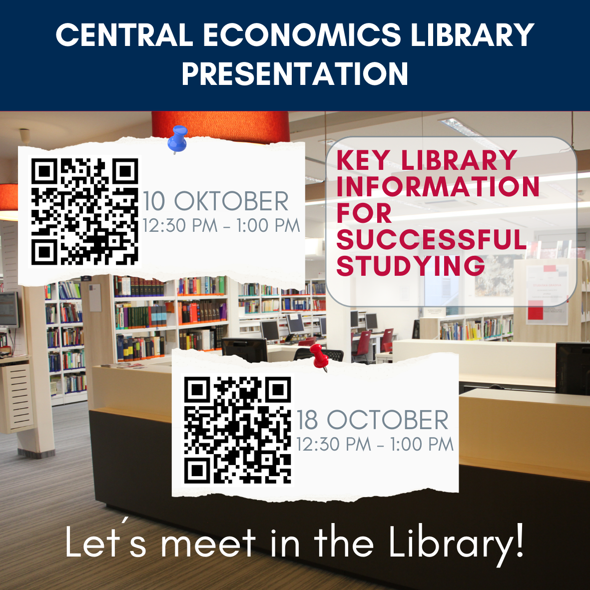 Whether you need materials for your seminar paper, textbooks for exam preparation, a good novel for your free afternoons, or a quiet study space, the Central Economic Library is the right choice for you.