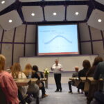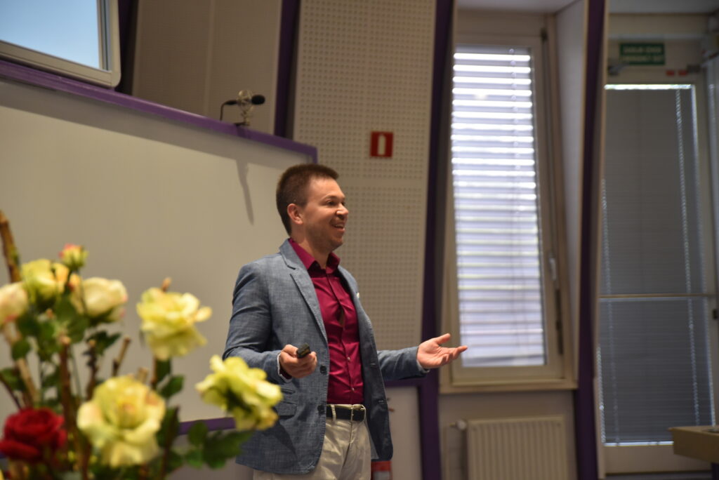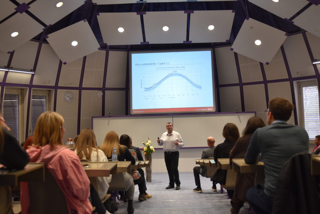 The first guest speaker, Samo Krančan, director of sustainability at Danfoss, emphasized the complex composition of ESG. One of their projects is to replace styrofoam with a paper substitute. The company has also introduced low-carbon plastic. He said that the plastic recycling process is still not as well developed as it could be, or as it seems to us at first glance.