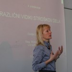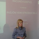 V predavanju z naslovom Različni vidiki stroškov dela je predstavila delovno-pravni, davčni in knjigovodski vidik obračuna in izplačila različnih vrst stroškov dela (stroški plač, nadomestila plač, dodatki na plače in drugo) pri podjetjih in pri samostojnih podjetnikih. Vsebina je zelo aktualna in podvržena mnogim spremembam, ki so bile sprejete v letu 2012, nedavno je bila sprejeta novela Zakona o delovnih razmerjih, davčne in druge spremembe pa napoveduje tudi nova vlada oziroma kandidati za ministre.