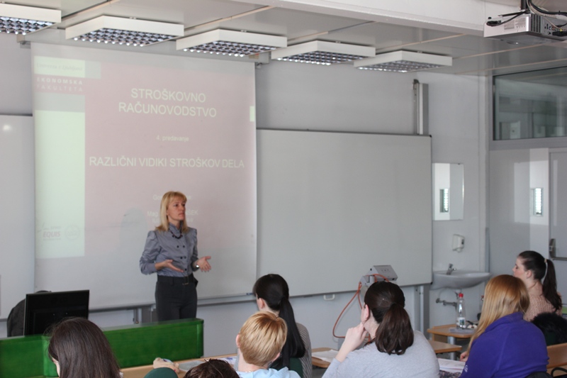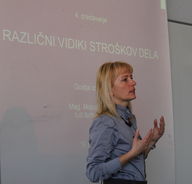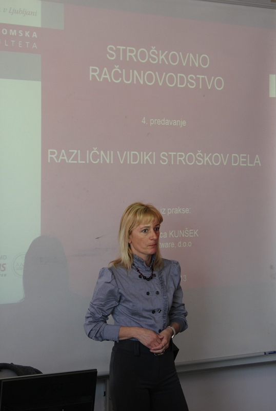 Pri predmetu Stroškovno računovodstvo v 3. letniku dodiplomskega študija (UPEŠ in VPŠ), ki ga izvaja mag. Aleksander Igličar, je v torek, 19. marca 2013 predavala gostja iz prakse mag. Mojca Kunšek, strokovna vodja portala FinD-Info, podjetja Ius Software.