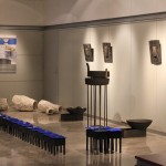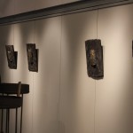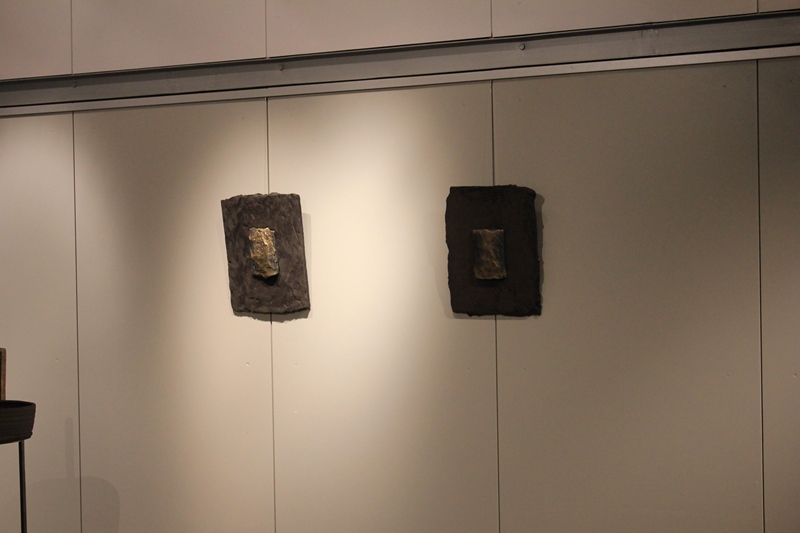 Karel Pavlinc udejanja ponavljanje preko postavitve keramičnih plošč in skled, ki jih dopolnjujejo kovaško obdelani kovinski dodatki.