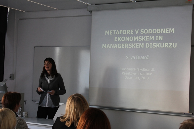 - v sredo, 11. decembra je Silva Bratož, Univerza na Primorskem predstavila članek: “Metaphors in Contemporary Economic and Managerial Discourse˝