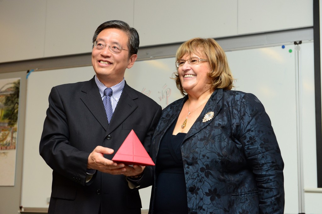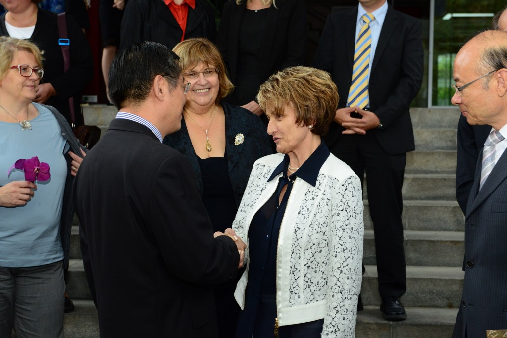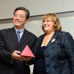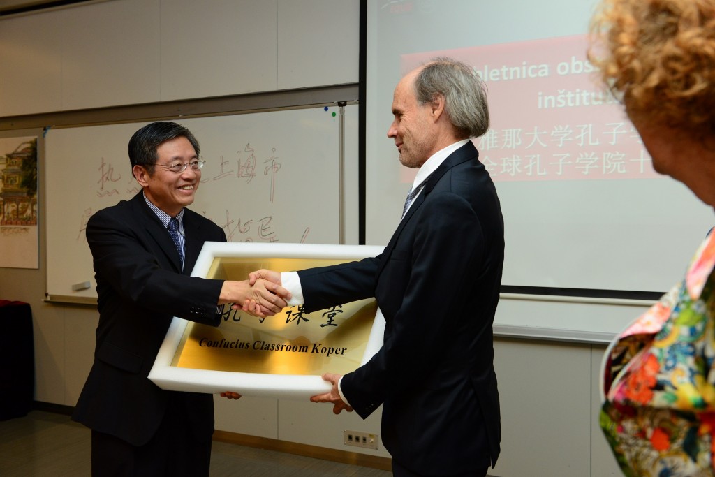 Ob tej priložnosti je gospod Tu Guangshao svečano predal plaketo rektorju Univerze na Primorskem prof. dr.Draganu Marušiču v znak ustanovitve nove, 4 konfucijeve učilnice v Sloveniji s sedežem na Univerzi na Primorskem.