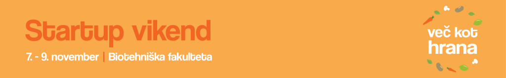 Startup vikend: Več kot HRANA! – tridnevni podjetniški dogodek na temo prehrane, živilstva, agronomije in pripadajočih sektorjev, kjer se bodo interdisciplinarne ekipe, sestavljene iz študentov, dijakov in ostalih, potrudile iz dobre ideje ustvariti dobro poslovno priložnost