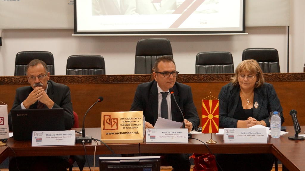 Uvodoma je dekanja Ekonomske fakultete, prof. dr. Metka Tekavčič, prisotnim predstavila Ekonomsko fakulteto ter vse dejavnosti, ki jih izvajajo v okviru navedenega programa v regiji ter sodelovanje s podjetji in inštitucijami v Makedoniji. “Prisotnost Ekonomske fakultete v regiji nam omogoča, da na pozitiven način prispevamo k spodbujanju ugodnega poslovnega okolja z visoko kakovostnim izobraževanjem za strokovne delavce v podjetjih in posameznike.”, je dejala prof. dr. Tekavčič.