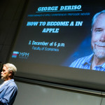 Mladi Projektni Managerji, ki delujejo pod okriljem Slovenskega združenja za projektni management, so v Veliki dvorani Ekonomske fakultete v Ljubljani 3. decembra 2018 organizirali dobrodelno obarvan dogodek »How to become A in Apple«. Osrednji gost dogodka je bil George Deriso, nekdanji manager v podjetju Apple v Avstraliji, ustanovitelj kar devetih start-upov, profesor, mentor in nenazadnje človek z velikim srcem in težkimi življenjskimi preizkušnjami. Stand up komik Tin Vodopivec pa je s svojimi šalami do solz nasmejal napolnjeno Veliko dvorano Ekonomske fakultete in tako poskrbel za sproščeno vzdušje.