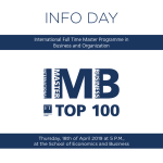 Si ambiciozen študent/ka?  Te zanima poslovni svet? Želiš pridobiti stik z mednarodnimi strokovnjaki? Pridi na Info dan IMB, ki je uvrščen med top 100 na svetu! Četrtek, 18. 4., ob 17. uri v P-119.