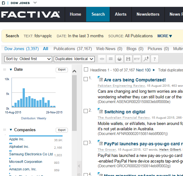 - Research successfully – searchers of all skill levels can gain easy access to Factiva’s broad range of quality sources.