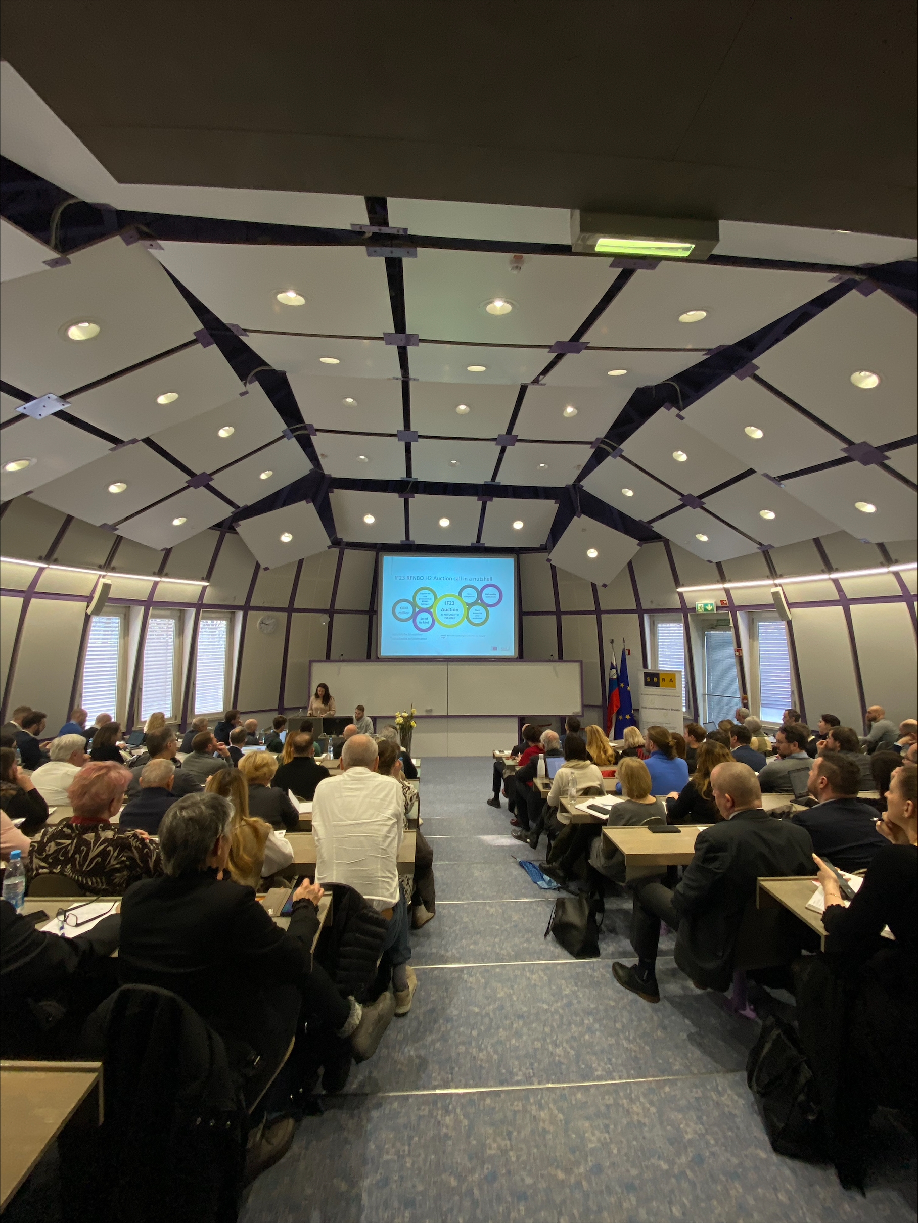 On Thursday, January 25, 2024, the Info Day on the EU Innovation Fund in Slovenia was held at the School of Economics and Business, University of Ljubljana. The event was initiated by the Slovenian Economic and Research Association (SBRA) and in cooperation with the Ministry of the Environment, Climate and Energy, the Ministry of the Economy, Tourism and Sport, the EU agency CINEA from Brussels and the University of Ljubljana, School of Economics and Business. The event was co-financed by Spirit Slovenia.