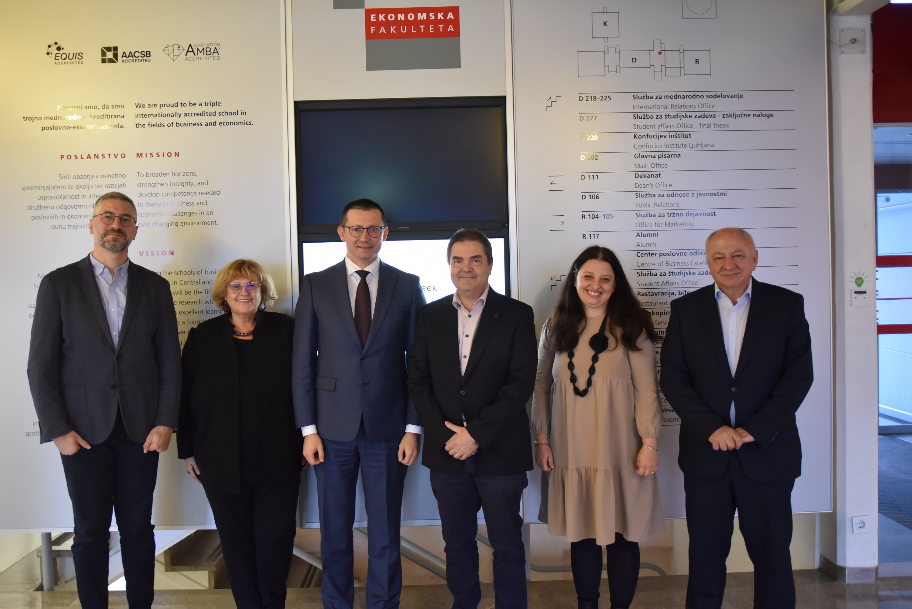 In the spirit of international cooperation, on December 4, 2024, the School of Economics and business, Ljubljana University hosted representatives from the Faculty of Economics Podgorica. Dean Prof. Tomaž Turk, Prof. Dr. Metka Tekavčič, and Assoc. Prof. Dr. Nuša Petek welcomed Dean Prof. Jocović, Assoc. Prof. Dr. Đurašković, and Prof. Dr. Lazović during their afternoon visit.The main topics of the visit were internationalization of studies and accreditations.
